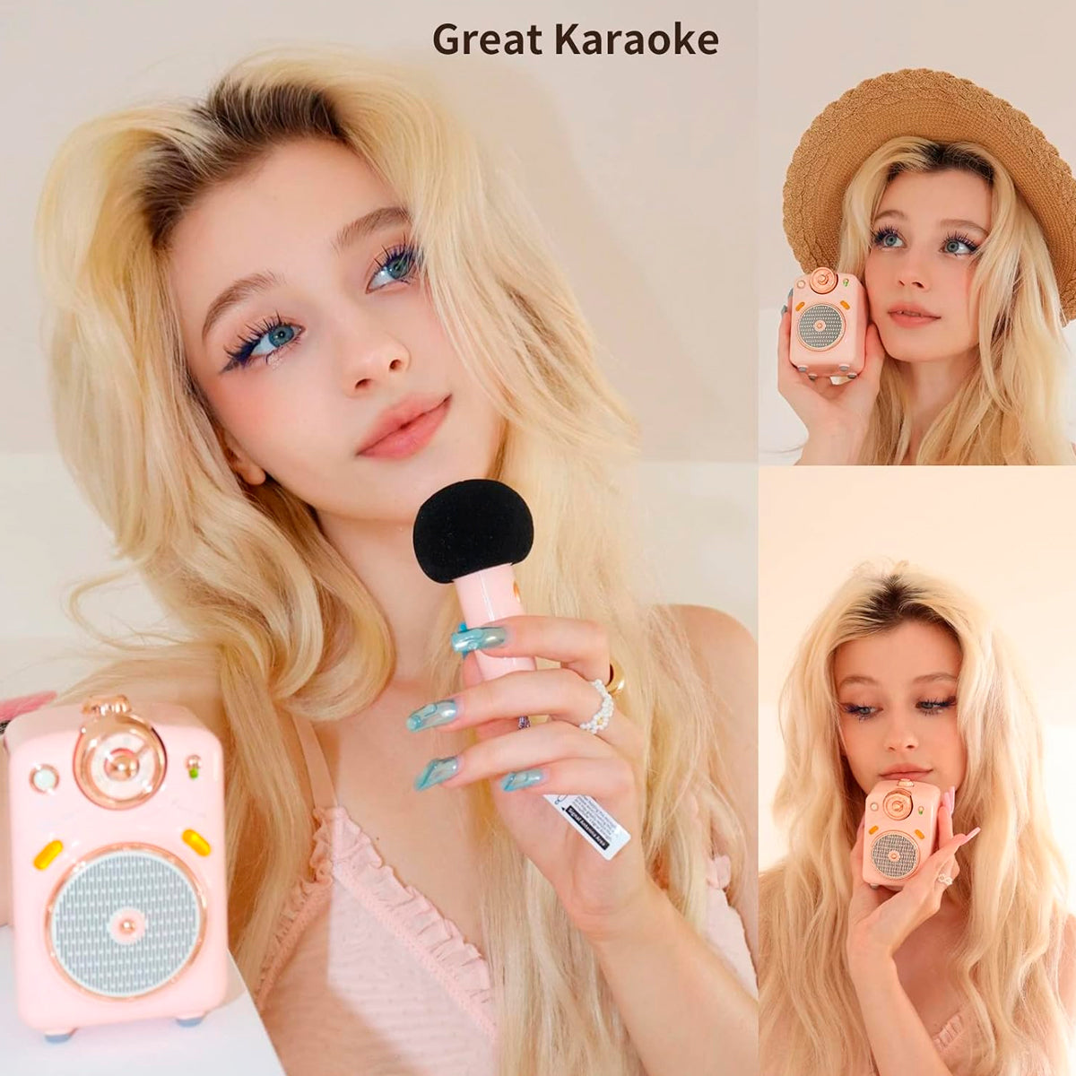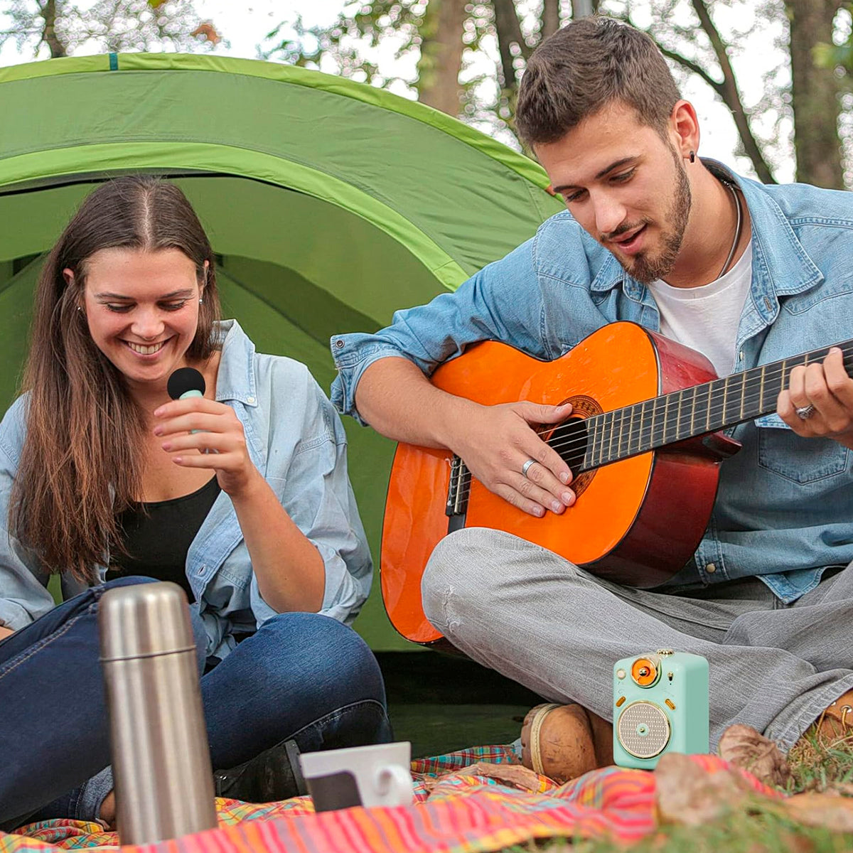 Solo por diversiónEste es nuestro altavoz de karaoke más popular. Más fácil y rápido emparejar el mini micrófono con el altavoz pequeño a través de bluetooth, canta canciones de karaoke con tu familia y amigos. |