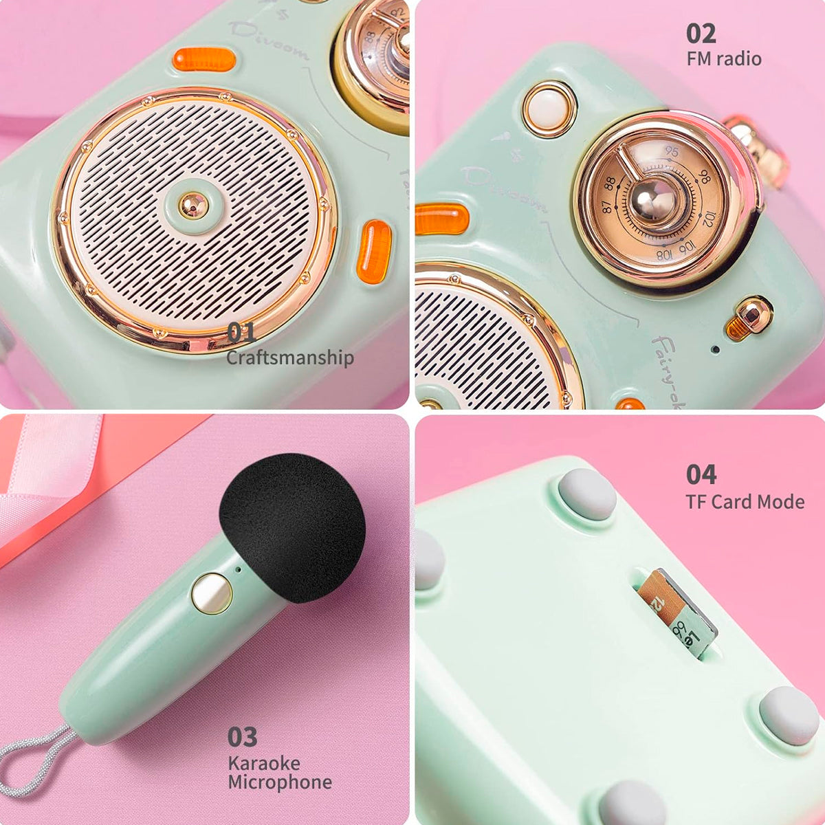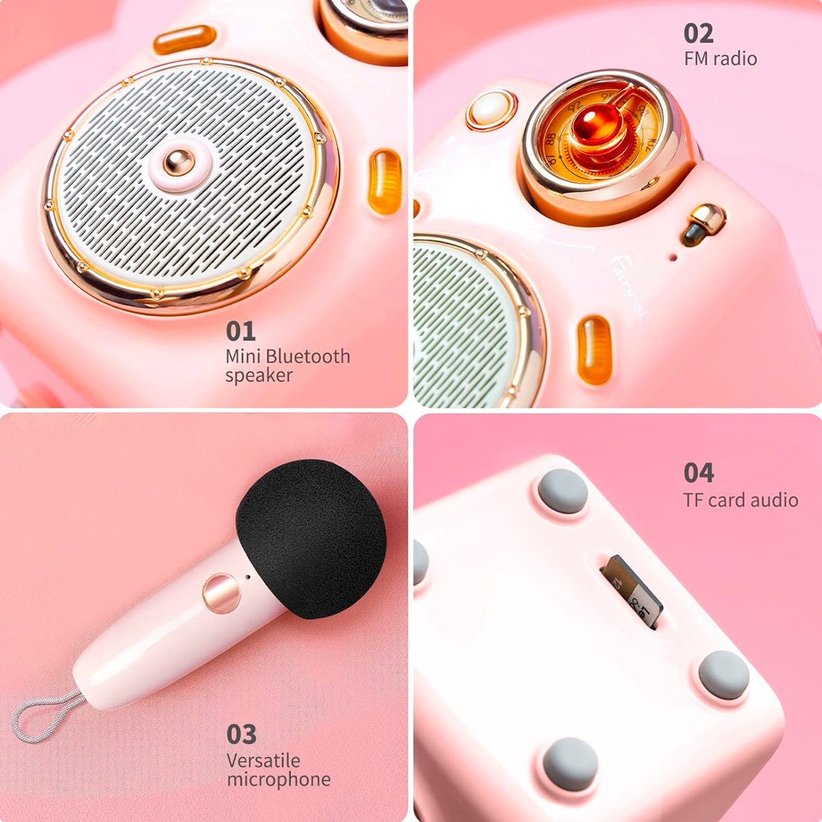 Máquina de karaoke 4 en 1El módulo Bluetooth de alta calidad se puede utilizar como altavoz portátil, reproductor de MP3, radio FM y grabadora, compatible con varias aplicaciones de canto y karaoke. |
