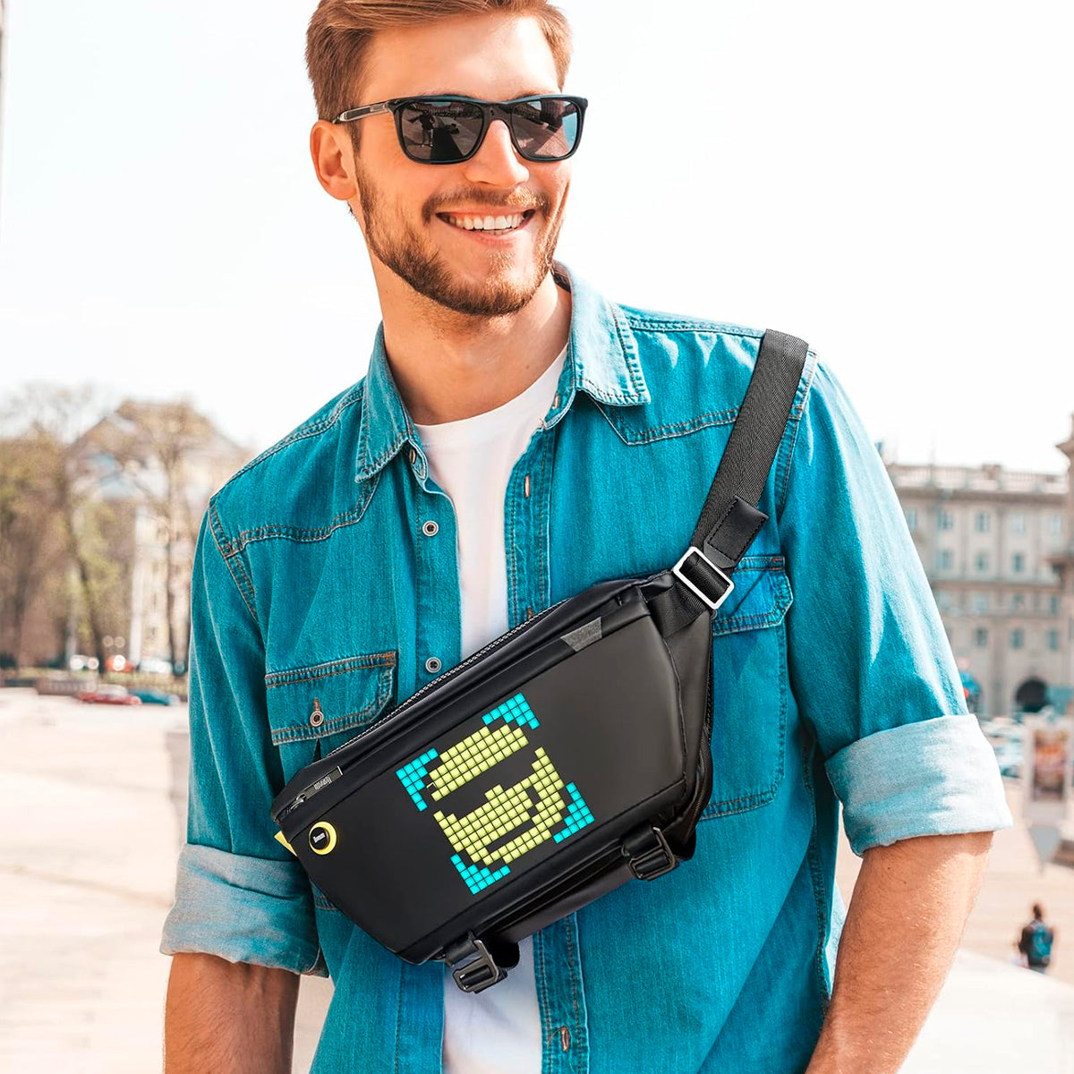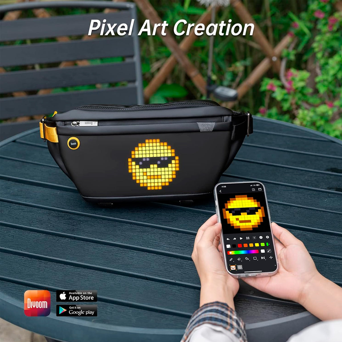 Esta es una divertida bolsa LED que se puede personalizar con el pixel art que desees en la pantalla. La aplicación Divoom preparó muchas imágenes establecidas o puedes elegir crear tu propia imagen con o sin texto. Sería genial usarlo para salir por la noche o para una fiesta rave para expresarse y ser creativo mientras viaja.