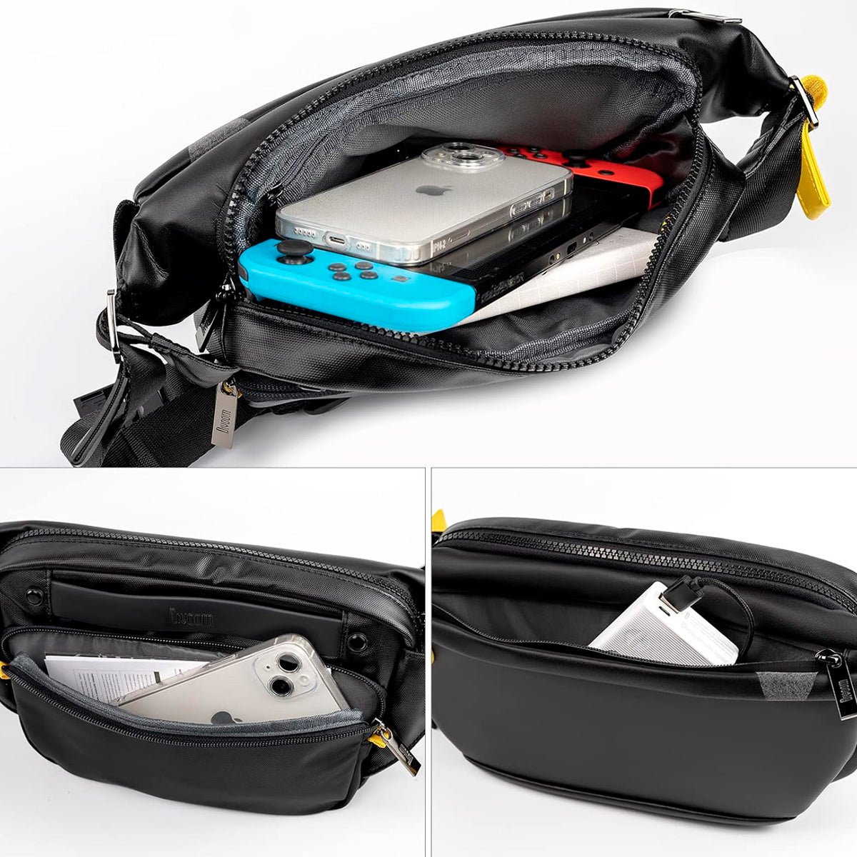 La bolsa frontal le permite guardar el banco de energía para alimentar la pantalla LED, con varios compartimentos separados dentro de la bolsa central, espacio suficiente para guardar iPad mini, maquillaje, pañuelos, llaves e incluso una botella de agua. La bolsa cruzada impermeable viene con una bolsa trasera para guardar el iPhone y la billetera, lo que la convierte en una mochila ideal para el día.
