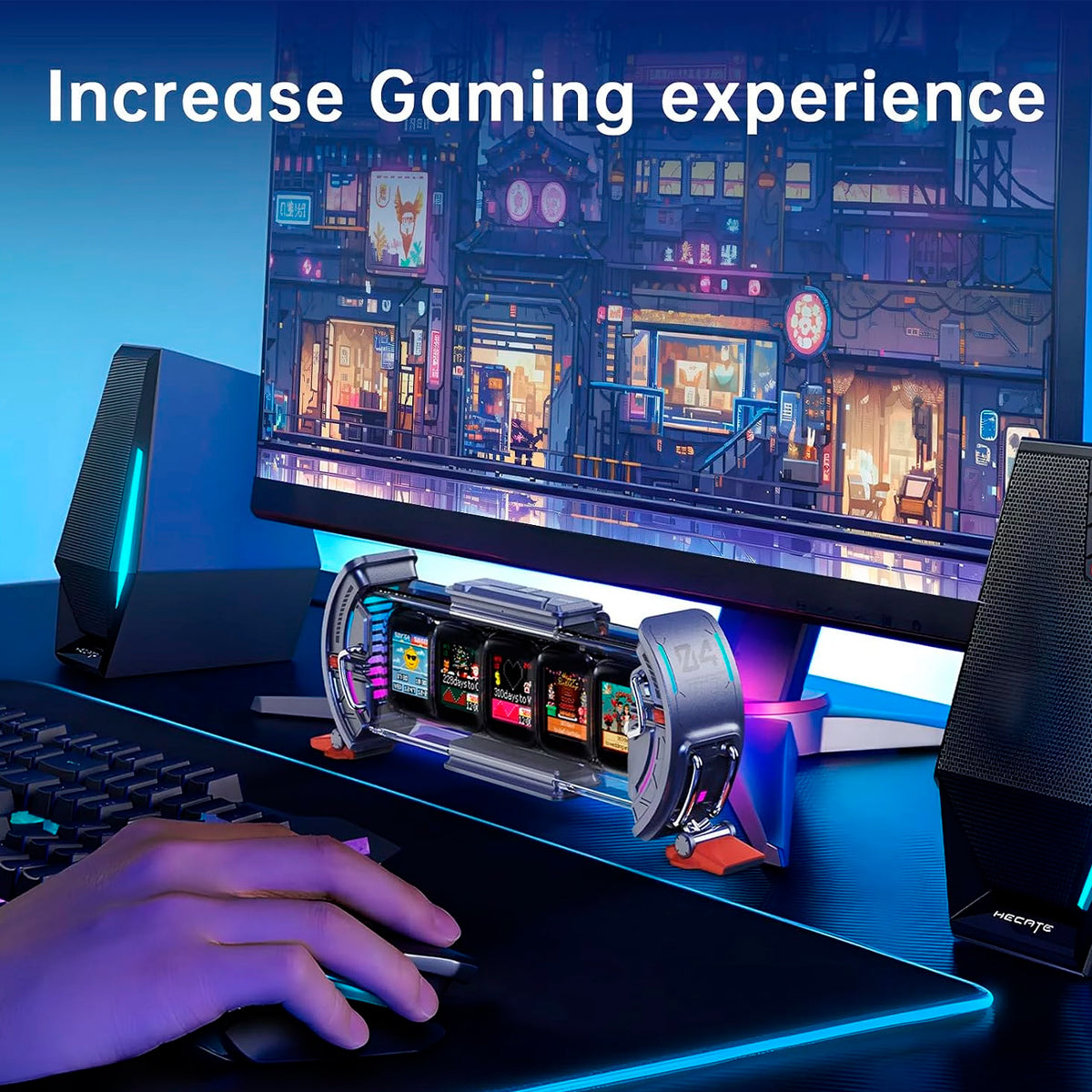 Con retroiluminación RGB y luz ambiente, y una pantalla LCD personalizable para complementar tu escritorio, este producto único iluminará tu espacio de trabajo y vida.
