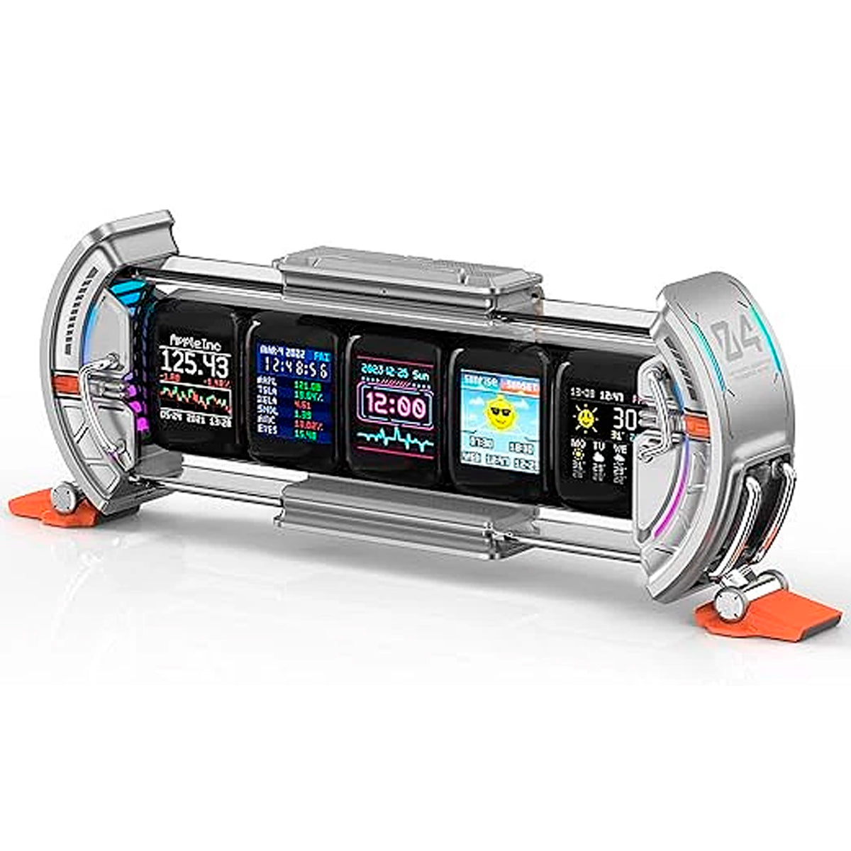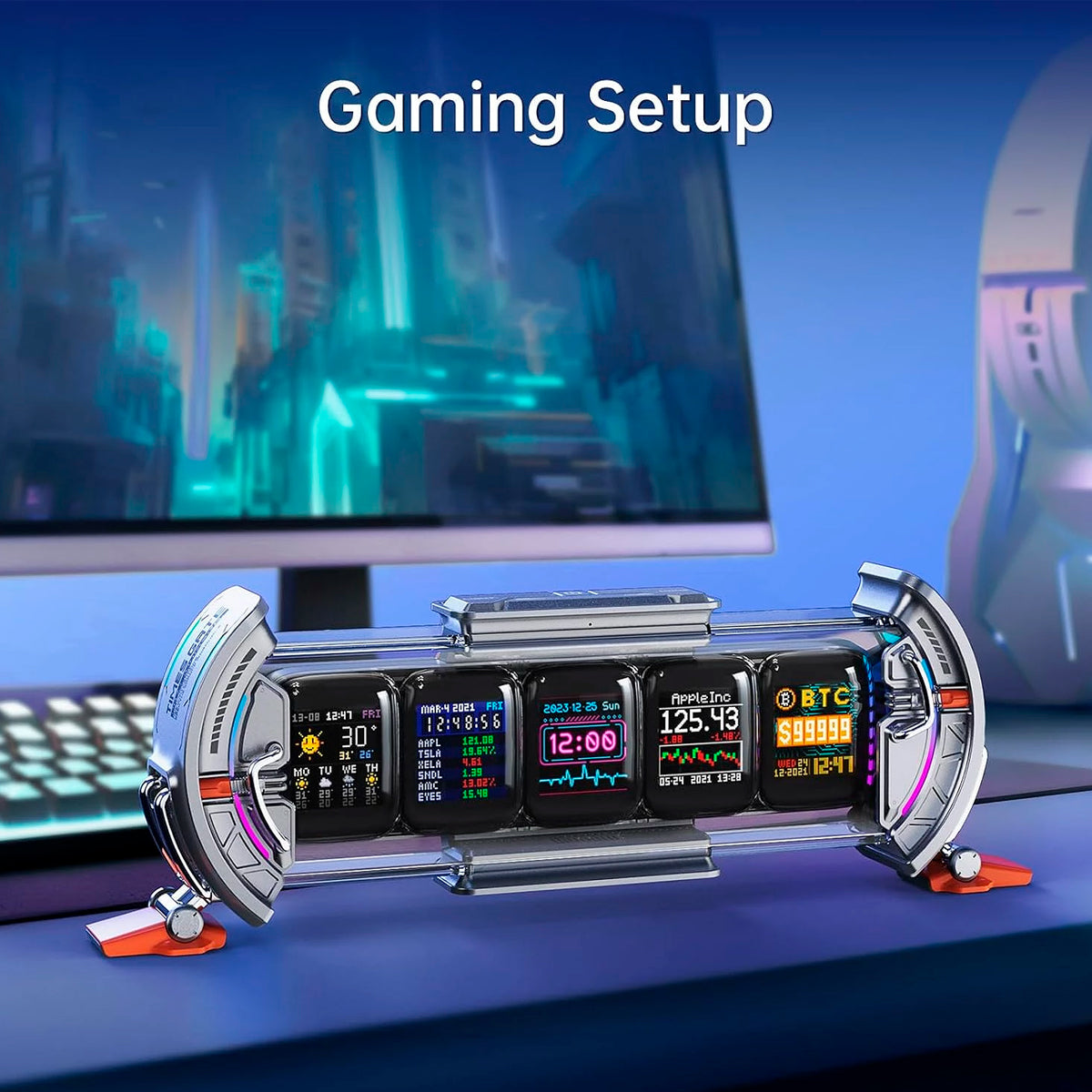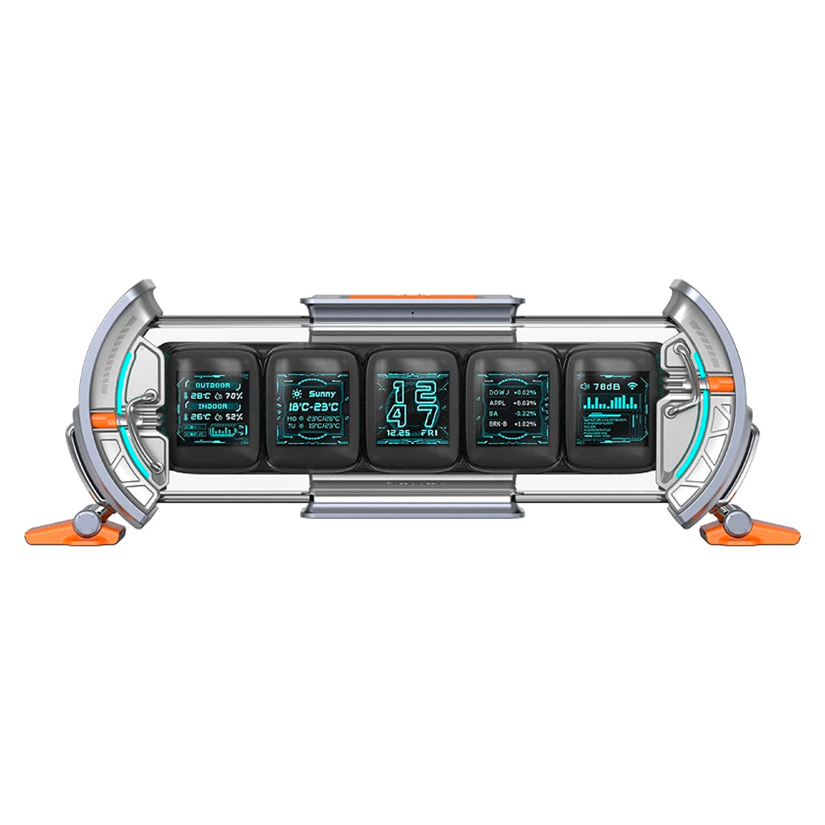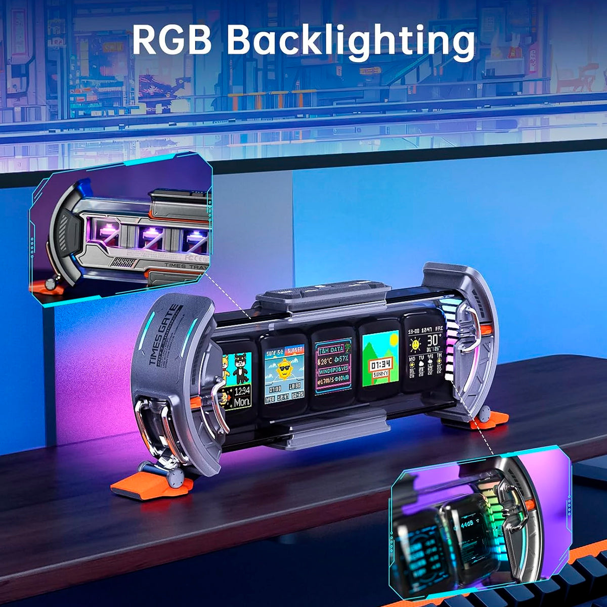 Times Gate consta de 5 pantallas LCD completamente a color que no solo simulan la hipnotizante luz del tubo Nixie, sino que también abordan la limitación de la corta vida útil del tradicional tubo Nixie y hacen que el reloj brille en un estilo ciberpunk de ciencia ficción, ¡genial!