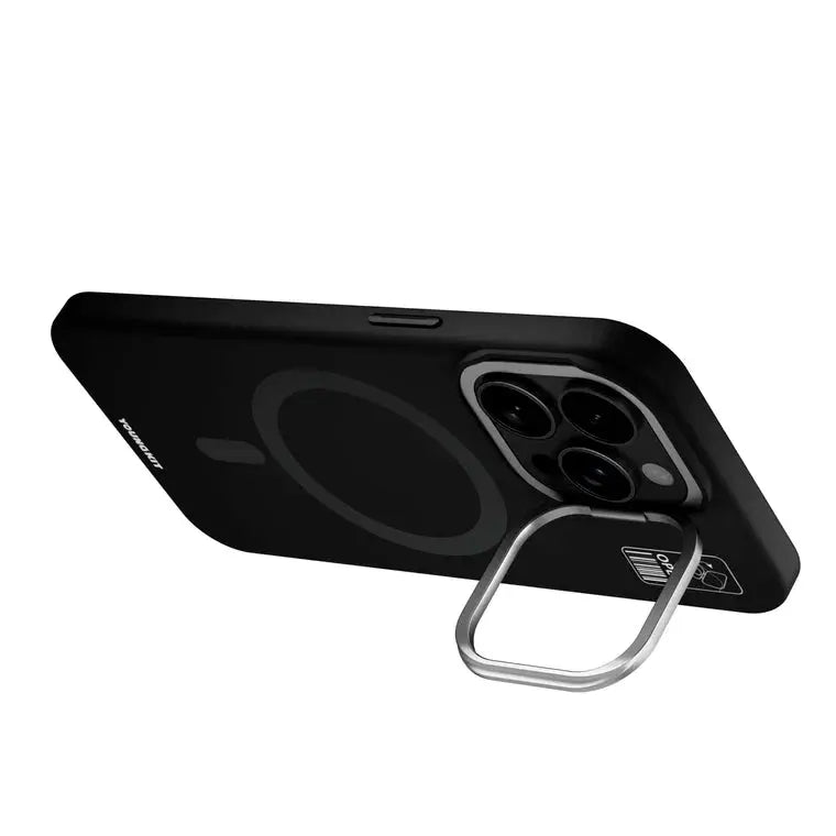 El exclusivo diseño elevado de protección de barrera de lente también es un soporte invisible para teléfono.
